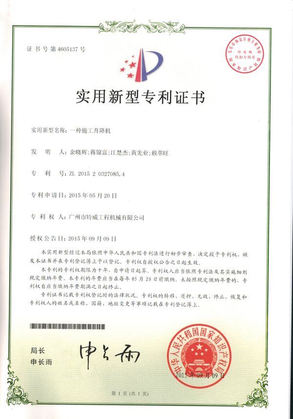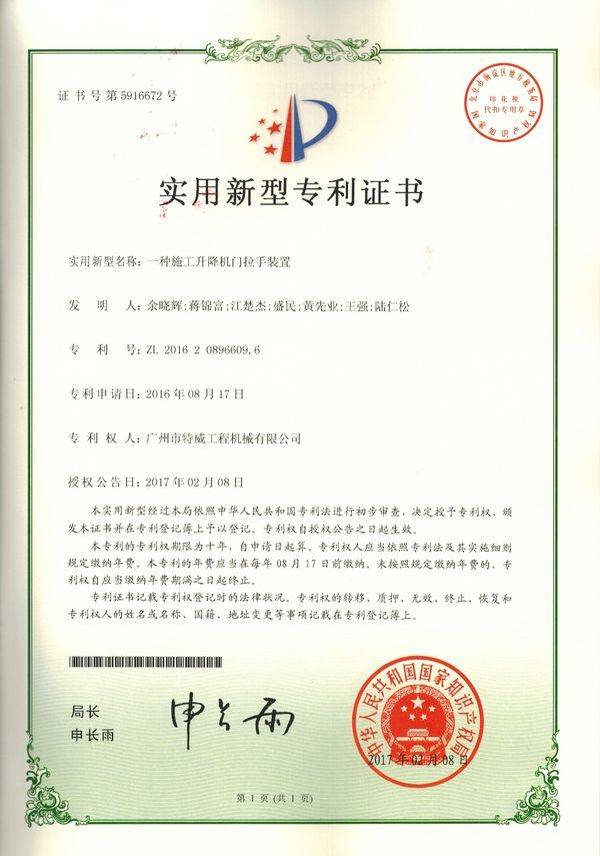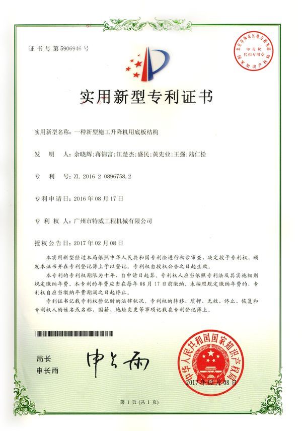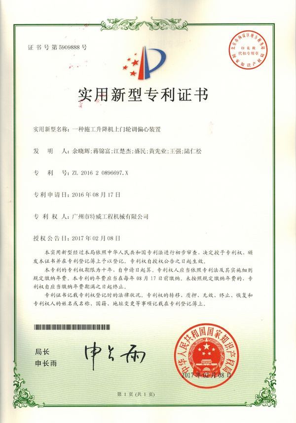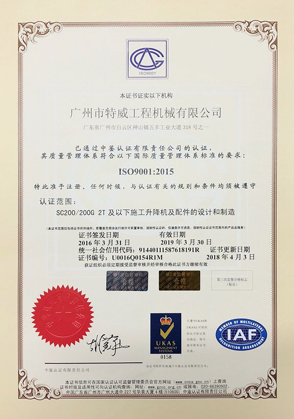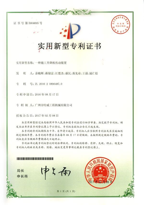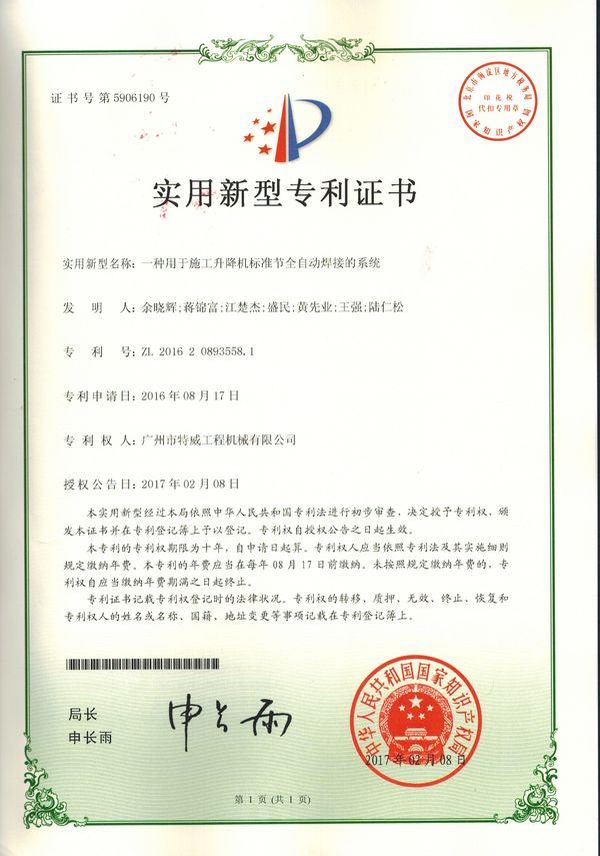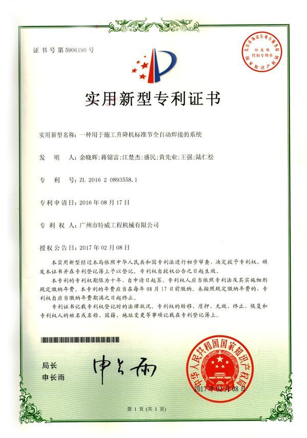 廣州市特威工程機械有限公司地處廣州市白云區神山鎮,廣清高速神山出口附近,是一家施工升降機的專業(yè)生產廠家。公司成立于2011年,占地100000多平方米,注冊資金1060萬元,現有員工300余人其中工程技術人員33人,高級技術人員52人。